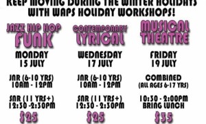 WAPS is excited to announce special workshops for the July school holidays! There’s no need to stop dancing over the holidays – keep moving this winter with our special WAPS holiday workshops! These holidays we are holding three exciting workshop sessions suitable for students from 6 yrs to teens! *Monday 15th July* Jazz/Hip Hop/Funk Workshops Learn fun and funky moves with lots of attitude and energy in this two hour […]
